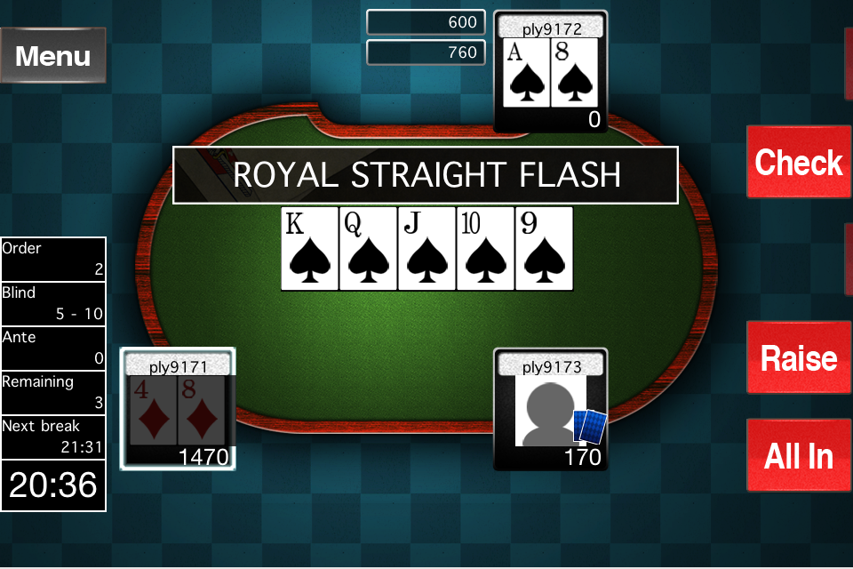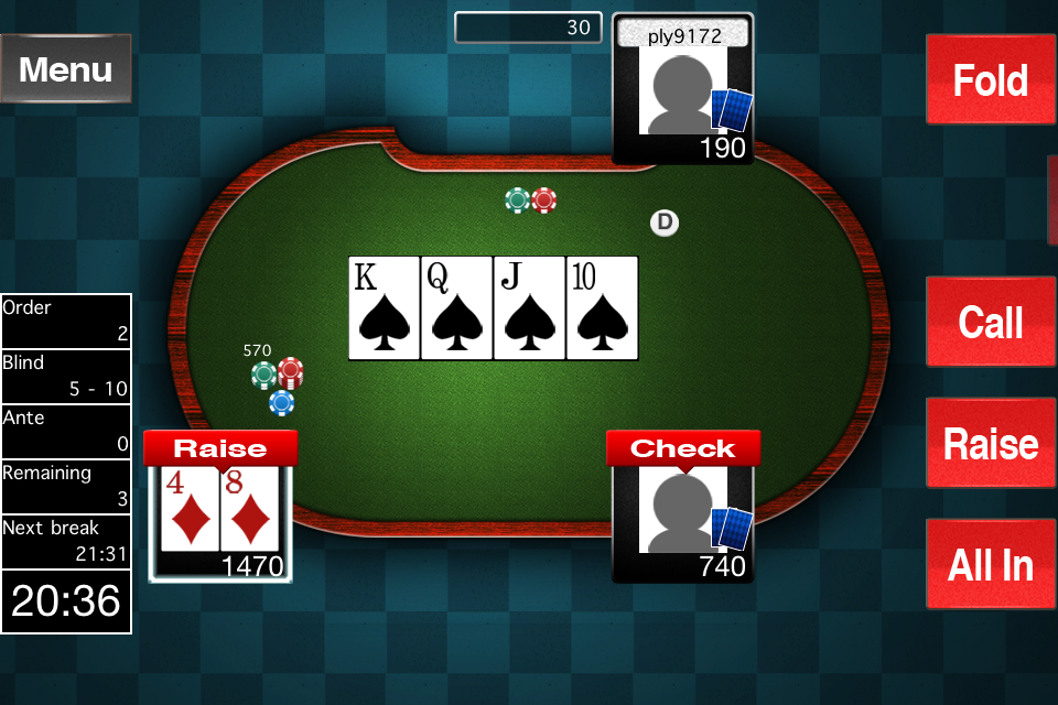 | Version 1.3[2011.10.28] * I add the sightseeing function of the tournament * I add [+SB]/[+BB] button with RAISE screen * I display the number of the users during the login * Bug fixed |