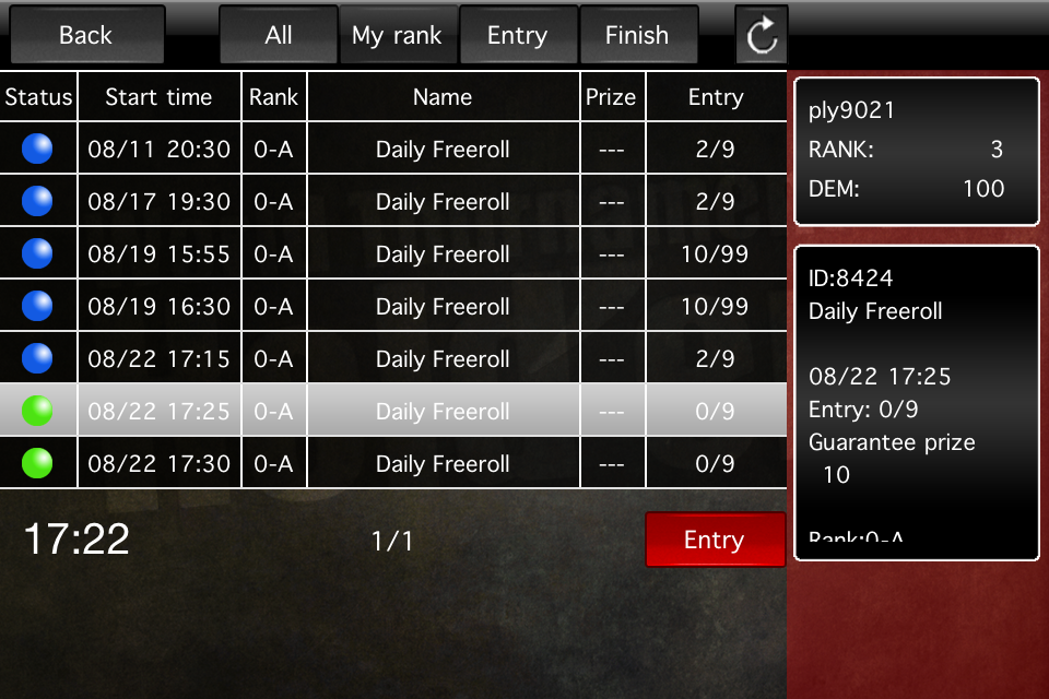 | Version 1.4[2011.11.20] * Bug fixed:Tournament entry is not possible |